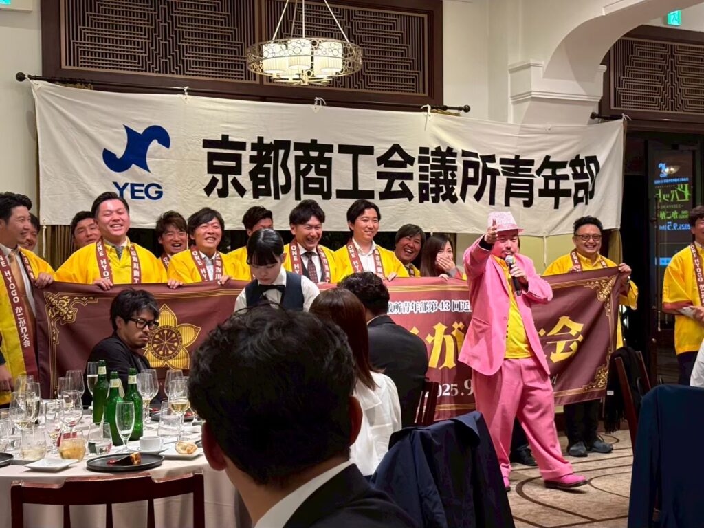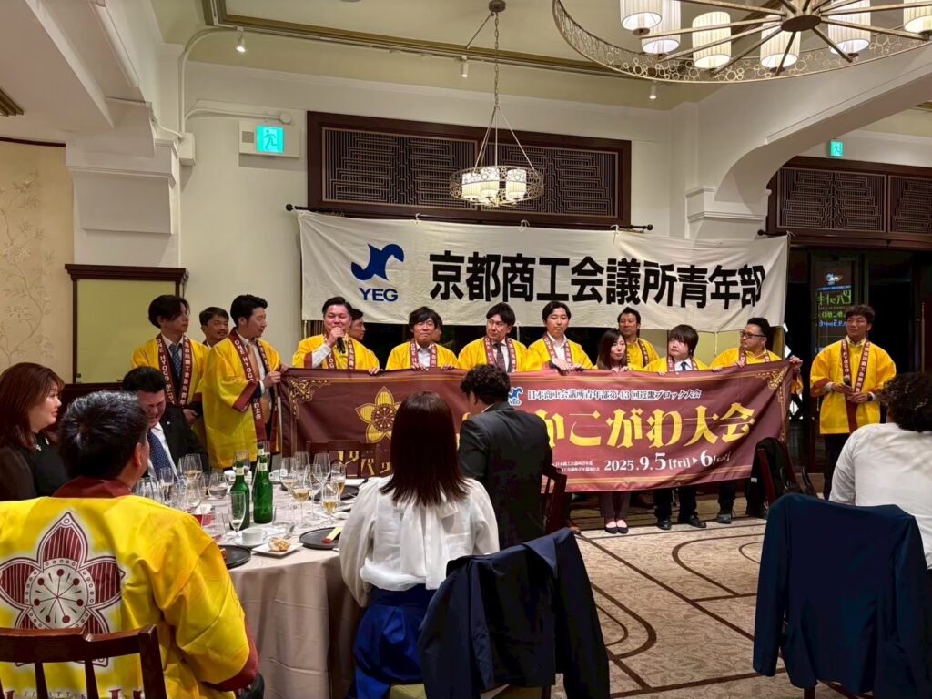審議事項1件が満場一致で承認され、懇親会では「交流」をテーマにアトラクションを実施。加古川YEGより近畿ブロック大会のPRも行われました。